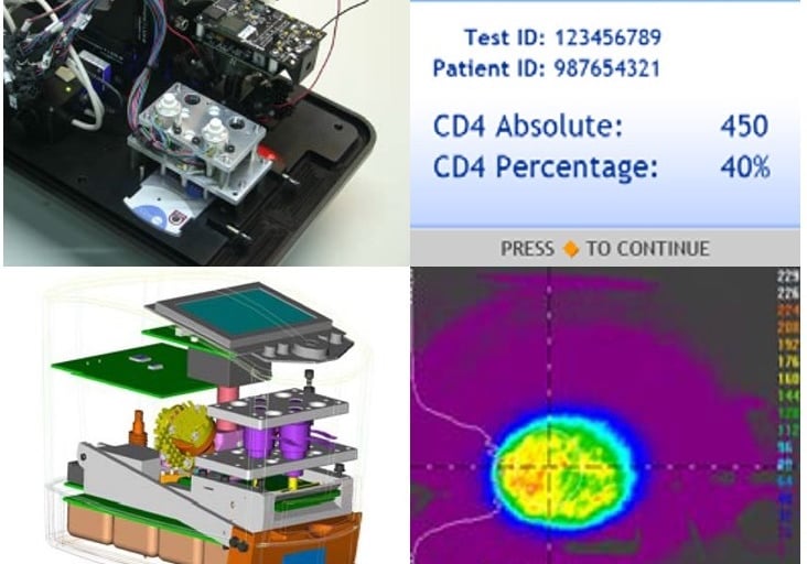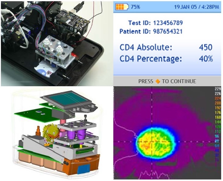 Developed point-of-patient HIV/AIDS diagnostic instrument to read lab-on-chip. Challenges included microfluidics, portability, micron optics, and motor control